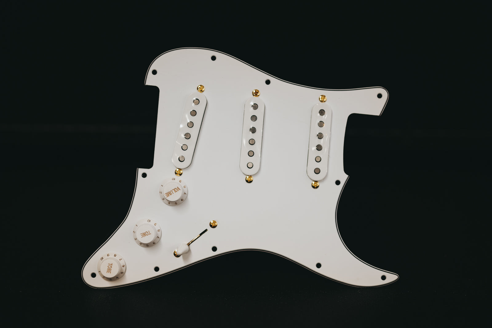 Our loaded pickguards come tested and fully-assembled. Simply solder your guitars body/bridge ground to the new pickguard, attach the output jack, and you're done!